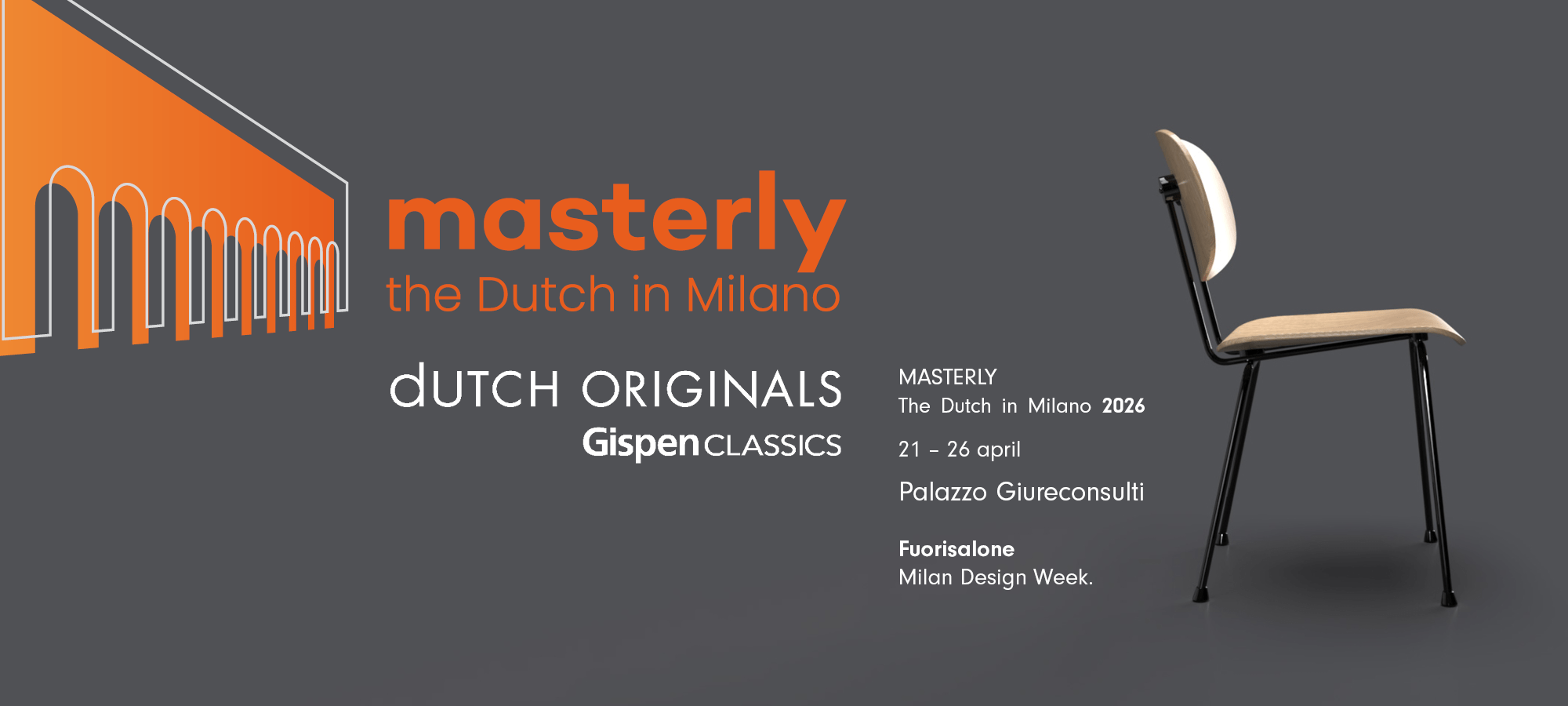 Als dé plek waar Dutch Design in 2026 wordt gepresenteerd, vormt Masterly het ideale podium voor Dutch Originals om zijn innovatieve kracht te tonen. Te midden van andere vooruitstrevende Nederlandse merken, zoals They & Me en de samenwerking tussen Mecanoo en Bert Plantagie, presenteert Dutch Originals een collectie waarin de ontwerpen van Willem Hendrik Gispen, Wim Rietveld en Richard Hutten samenkomen.